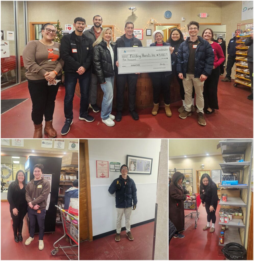 December 2025 – Whitestone staff volunteered at the Feeding Hands food pantry in Hillsborough, NJ, and we’re honored to serve as a Gold Sponsor for the second year in a row. Giving back to the communities in which we live and work is an important part of our corporate culture.